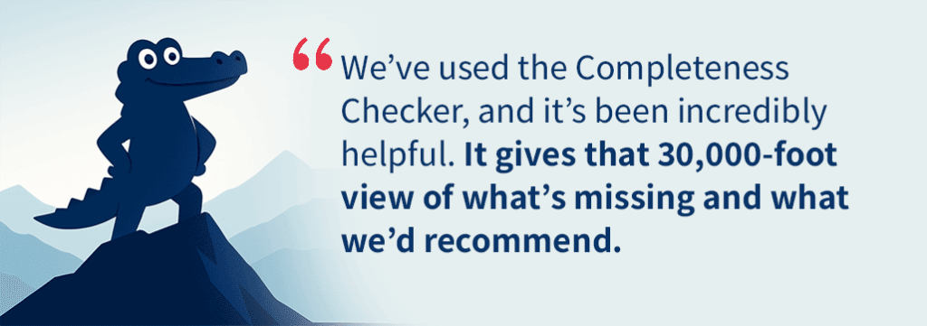 - Data-Driven Confidence: Tools like the Completeness Checker ensure that teams know where gaps exist, eliminating the uncertainty of manual reconciliations.